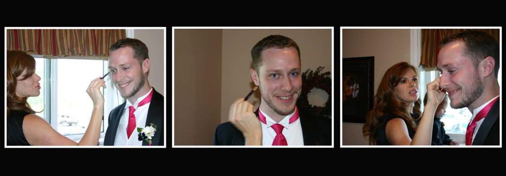 The ceremony was outside, the grounds were gorgeous, the sky was clear, the colors were amazing. Andrea was such a beautiful bride. Jon performed the ceremony, and he did a wonderful job. It was short (we were freezing in our formal wear in 50 degree weather!) but so meaningful. I cried, of course. Seeing so many of my best friends up there, celebrating and witnessing for them, was a big part of my tears, I'm sure! Matt and Matt Horrocks were groomsmen and both looked so handsome in their tuxes! And Jon was very dignified in his suit and with his beard. Kill's sister, J and Andrea's cousin, Julie have also become good friends and they were bridesmaids. Andrea's best friend from Las Vegas, Erica, and her brother, Jason, were the other attendants. Everyone was beautiful - the black and white theme was very classic.